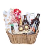 Espumante Casa Perini moscatel branco, Ferrero Rocher, torrone 45g, drágeas de chocolate sabor capuccino, biscoito dinamarques Danisa 90g.